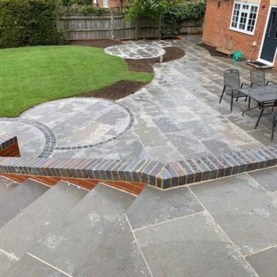 Coming off their new extension, our client now has a large patio in Buff Brown Sandstone perfect for some garden furniture.