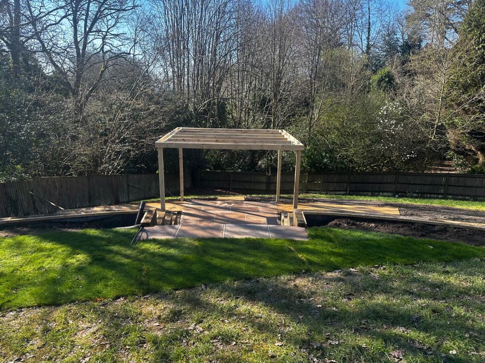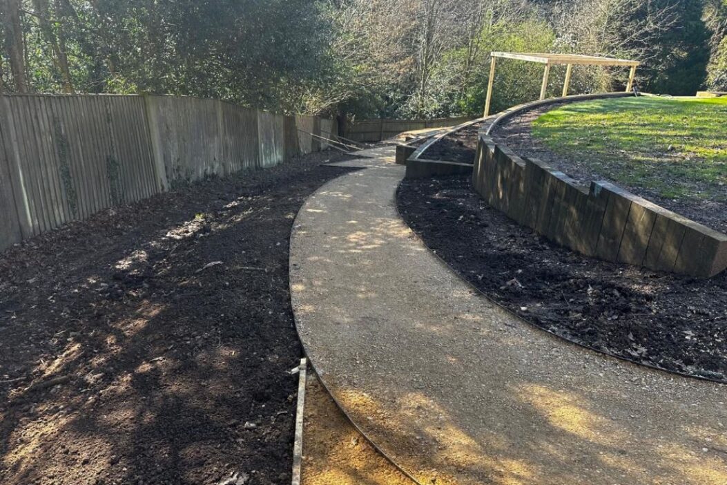 Our client chose an ideal time for carrying out the landscaping, and now the sunshine has arrived their garden is ready to enjoy throughout the spring and summer. (The ALDA team might slightly disagree, as it took place during the weeks of relentless rain, and conditions became very muddy, excavating and moving large quantities of soil in the early stages of the works!!) There is just one job left to do and that is the planting; once complete, our client will be able to sit back and enjoy seeing the plants bed in and flourish through the warmer months.